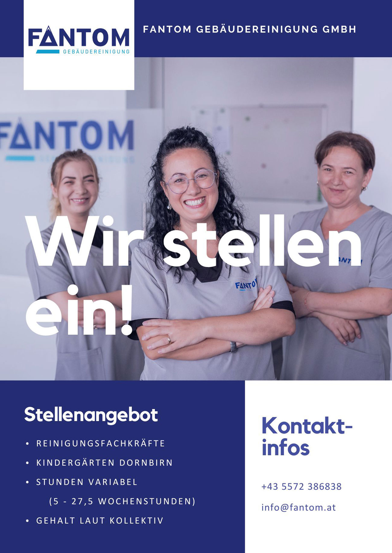 Wir suchen engagierte Reinigungsfachkräfte für die Betreuung von Kindergärten in Dornbirn. Die Arbeitszeiten sind flexibel und variabel, zwischen 5 und 27,5 Wochenstunden. Sie erwartet eine faire Bezahlung laut Kollektivvertrag. Wenn Sie zuverlässig sind und Freude an einer sauberen Arbeitsumgebung haben, freuen wir uns auf Ihre Bewerbung!